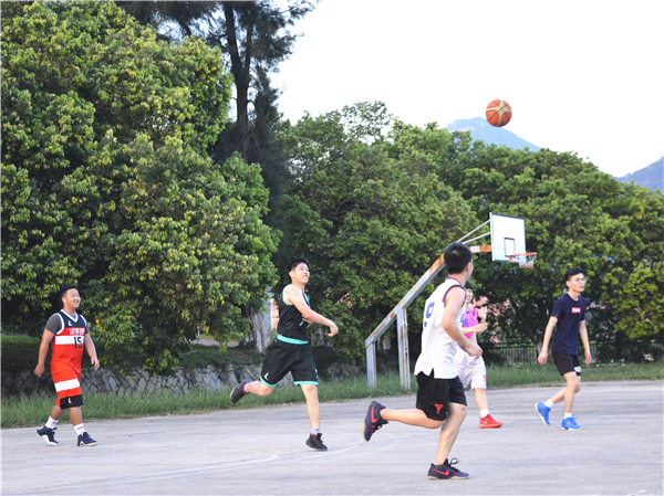 6月28日下午,今年会jinnian官网于第三教学区湖边篮球场举办欢送大四篮球友谊赛,今年会jinnian官网党总支副书记黄伟斌、辅导员陈国伟到场观看并参加比赛。
