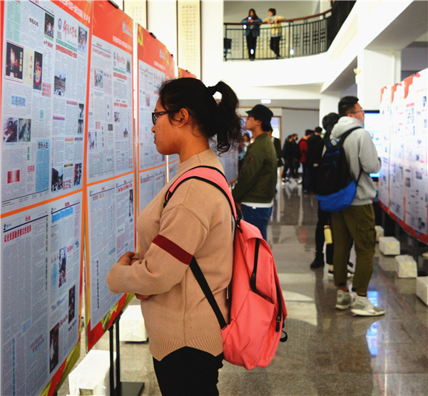今年会jinnian官网学子观看庆祝改革开放40周年校报展