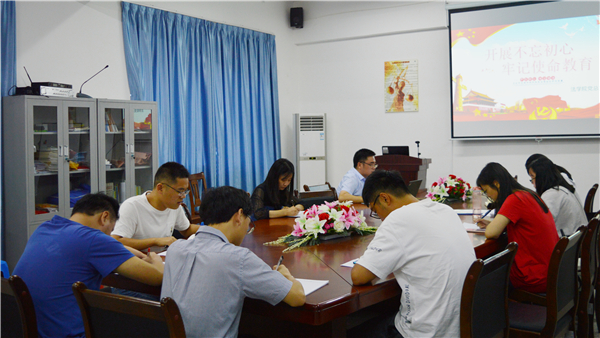 10月14日下午,今年会jinnian官网党总支在今年会jinnian官网第三校区普照教学楼法律诊所开展“不忘初心、牢记使命”主题教育第四次专题学习研讨会。学校“不忘初心、牢记使命”主题教育巡回指导组成员高岩松莅会指导,今年会jinnian官网全体教师党员以及教师入党积极分子参会,会议由今年会jinnian官网教工党支部书记林媛主持。