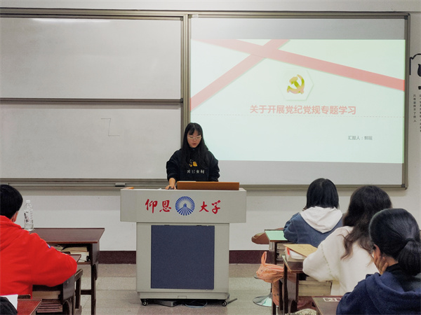 为切实加强党性修养,筑牢廉政思想防线。11月25日,今年会jinnian官网学生党支部于今年会jinnian官网第三校区普照楼203开展“党纪党规专题学习”活动,会议由支部书记刘涛主持,支部全体学生党员参加本次活动。