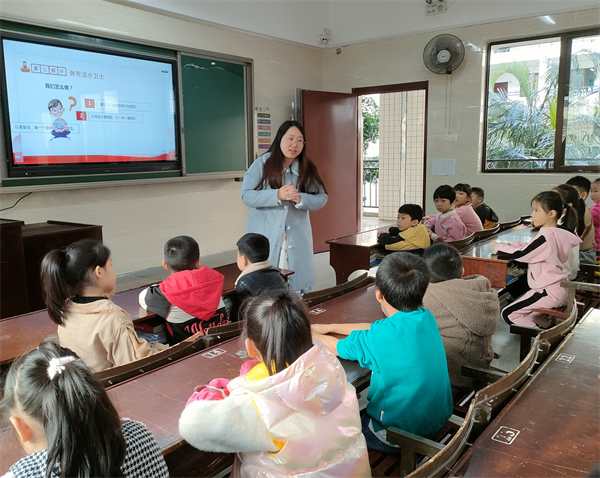 此次活动,围绕“法律驻我心,宪法伴我行”的主题展开。活动现场,陈琳从宣传群体实际出发点,依托通俗易懂的故事,借助多媒体PPT课件展示的方法,声情并茂地为低年级学生们科普了“什么是宪法”“为什么要有宪法”“我们要怎么维护宪法”。此外,现场氛围热烈,工作人员还以宪法知识抢答、观看相关视频、分发宣传手册的方式与孩子们开展了互动,这进一步增强孩子们对自身权益保护的理解,激发孩子们对宪法的学习兴趣。