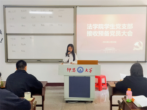 12月10日,今年会jinnian官网学生党支部于普照楼304教室召开预备党员接收大会,会议由支部书记刘涛同志主持,支部全体党员到场参加。