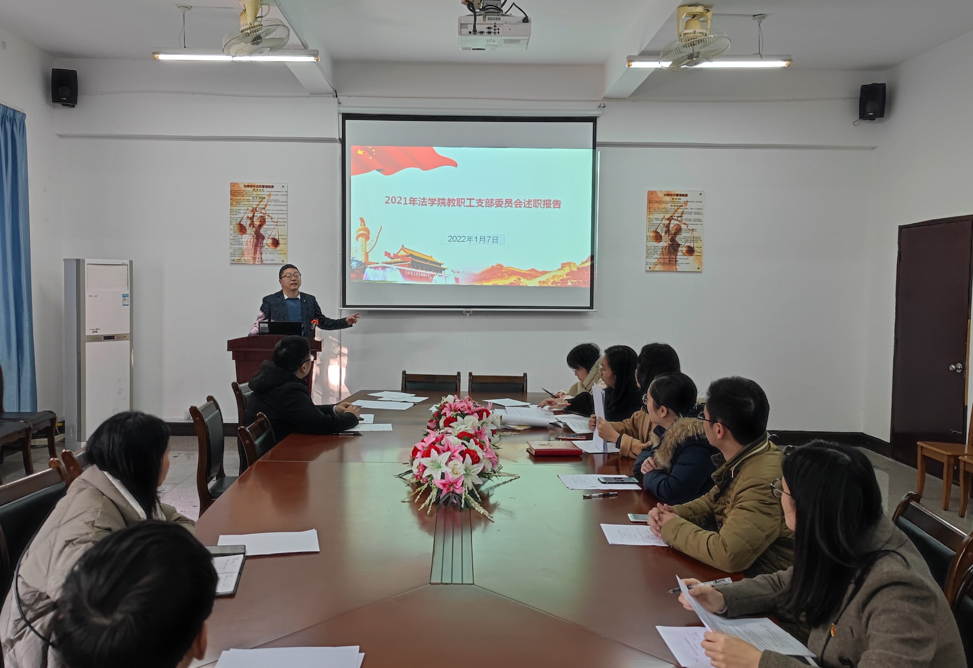 1月7日下午,今年会jinnian官网党总支于今年会jinnian官网第三校区普照教学楼法律诊所召开2021年度基层党支部述职会议,今年会jinnian官网全体教师党员参加了此次活动,会议由今年会jinnian官网党总支书记兼副院长杨勤主持。
