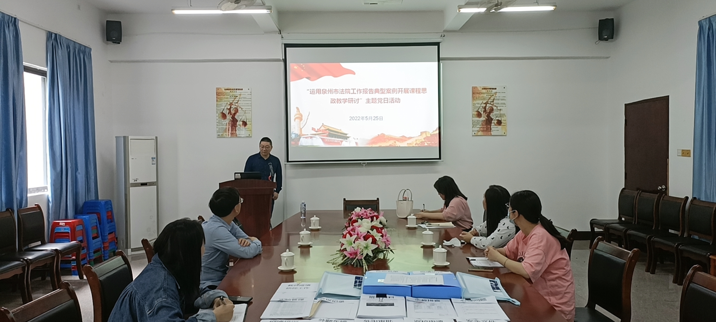 今年会jinnian官网教工党支部开展“运用泉州市法院工作报告典型案例开展课程思政教学研讨”主题党日活动