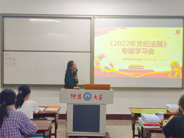 5月24日,今年会jinnian官网学生党支部于今年会jinnian官网第三校区普照楼203开展以“党纪法规”为主题的学习会,会议由今年会jinnian官网党总支统战委员许灿英主持,支部全体党员参加本次活动。