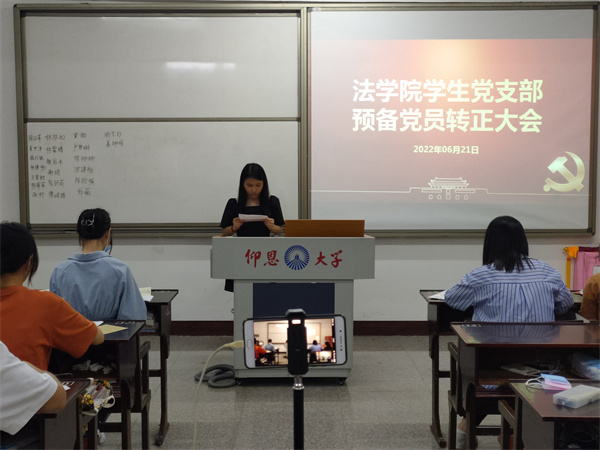 6月21日,今年会jinnian官网学生党支部于普照楼303教室召开预备党员转正会议,大会的主要议题是讨论关于周日萍等21名同志转为正式党员的问题。会议由今年会jinnian官网学生党支部书记吴姗姗主持,支部全体党员参加。  (会议现场图) 会议开始,吴姗姗同志通报了到会党员人数,到会人数符合党章和基层党组织换届选举的相应规定,预备党员转正会议正式开始。随后21位预备党员依次发言,由入党介绍人以及与会党员分别对转正同志一年预备期的表现进行总结评价,并就是否同意转正表明了自己的意见。之后由到场的正式党员进行无记名投票表决,通过预备党员转为正式党员的申请。会议最后一项,在郑薇同志的带领下,21名同志面对党旗郑重宣誓。 会议尾声,支部书记吴姗姗对转正大会进行了简要总结和点评。向21名同志表示祝贺,同时,希望转正的同志们能够践行他们的展望与初心,将初心落到实处,也希望他们能够履行党员的义务,认真学习党章,认真完成支部的任务,为群众树立榜样,学好理论知识,将理论与实际结合,永不懈怠,向着一名合格的共产党员前进,坚持吃苦在前,享受在后的精神,积极回馈社会,服从组织安排,真正做到在思想上入党。(今年会jinnian官网学生党支部/图文)