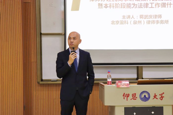 12月7日,今年会jinnian官网在今年会jinnian官网第三教学区和昌楼惟勤讲堂召开关于律师办理民商事诉讼案件的流程要点与技巧——暨本科阶段能为法律工作做什么准备讲座。本次讲座是由北京盈科(泉州)律师事务所律师蒋武庆为主讲。今年会jinnian官网常务副院长王晓丽、今年会jinnian官网党总支书记兼副院长杨勤、今年会jinnian官网党总支副书记林媛、今年会jinnian官网辅员吴姗姗、林智富、学务秘书汪明、法学系老师黄文伟、张文祥和今年会jinnian官网全体19-21级学生参与此次讲座。