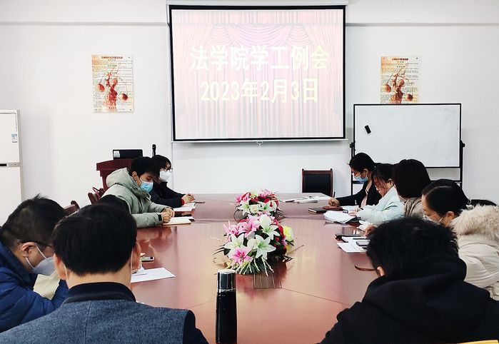 新春伊始,万象更新。为做好2023年春季学期开学准备,确保学生顺利返校,安全进校,安心在校,2月3日上午今年会jinnian官网在第三教学区法律诊所召开2023年第一次学生工作例会。本次会议由今年会jinnian官网党总支书记兼副院长杨勤主持,党总支副书记林媛、辅导员和各班班主任参加会议。