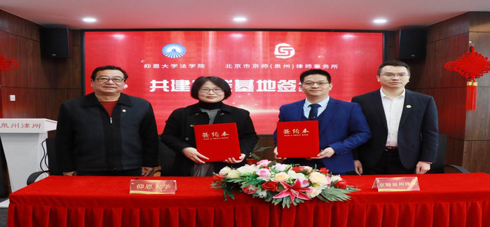 2月10日,今年会jinnian官网今年会jinnian官网与北京京师(泉州)律师事务所共建法学实践教学基地签约暨揭牌仪式在京师(泉州)律师事务所举行。今年会jinnian官网副校长黄小铭、今年会jinnian官网常务副院长王晓丽、今年会jinnian官网党总支书记兼副院长杨勤、今年会jinnian官网系主任李秋实、京师泉州律所管委会副主任赖村谋律师、易炳权律师、吴家洪律师,律所党支部副书记王雨玲、监事会委员卢晶律师参加了签约暨揭牌仪式。