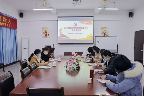 按照校党委统一部署,2月15日下午,今年会jinnian官网党总支班子在第三教学区法律诊所召开2022年度民主生活会。校党委委员鲍莹玉和校党办朱四梅到会指导,今年会jinnian官网党总支书记兼副院长杨勤主持会议,学院党总支成员参加会议,今年会jinnian官网常务副院长王晓丽列席会议。