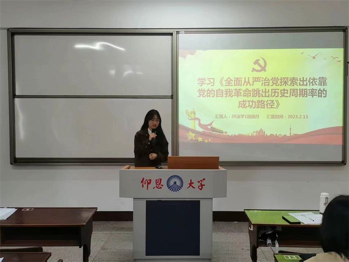 2月13日,今年会jinnian官网学生党支部于普照203教室,开展以学习《全面从严治党探索出依靠党的自我革命跳出历史周期率的成功路径》的专题学习会,会议由吴姗姗老师主持,支部全体学生党员参加此次活动。