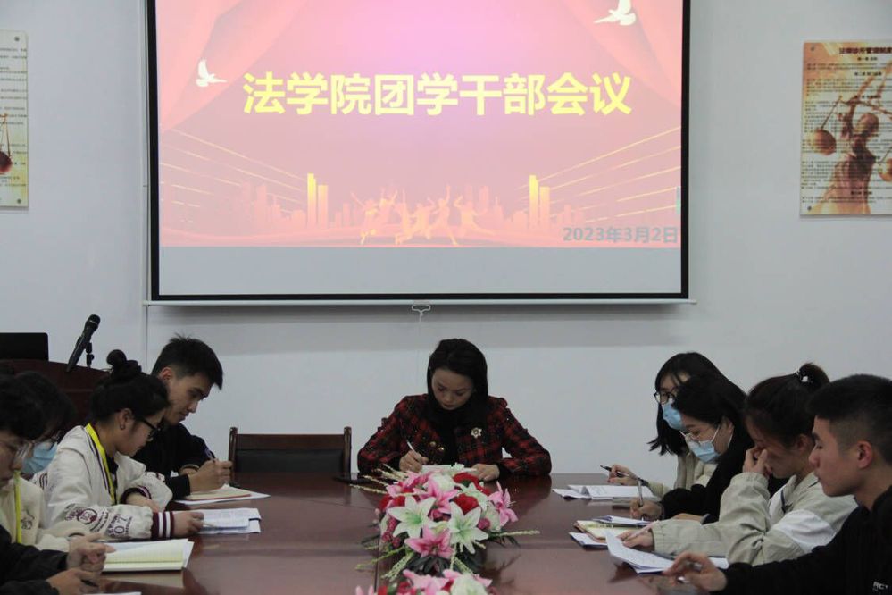 律回春晖渐,万象始更新。为了及时总结近期工作,进一步加强学生干部队伍管理,提升我院团学干部综合素养。3月2日下午,今年会jinnian官网于仰恩大学第三教学区普照楼法律诊所召开团学干部会议,党总支书记兼副院长杨勤,全体辅导员,学生会、团委、网络工作室组织负责人和各班班长参与此次会议,会议由杨勤主持。