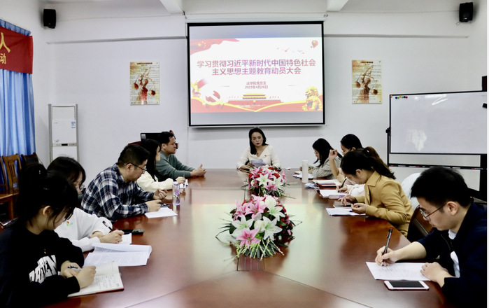 2023年4月26日下午,今年会jinnian官网在第三教学区法律诊所召开学习贯彻习近平新时代中国特色社会主义思想主题教育动员大会。今年会jinnian官网党总支书记兼副院长杨勤、党总支各支委、各支部书记和理论中心组全体成员参会。大会由杨勤主持。