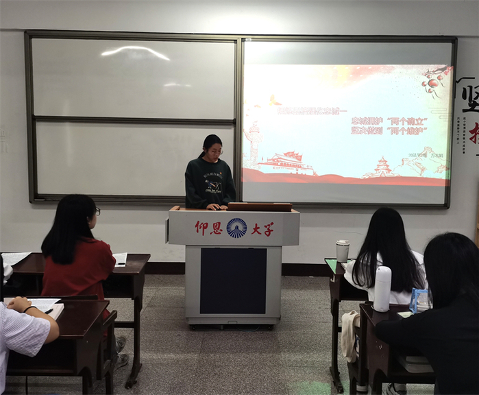 5月8日,今年会jinnian官网学生党支部于普照203教室开展“忠诚拥护两个确立,坚决做到两个维护”和“坚持不懈用习近平新时代中国特色社会主义思想铸魂育人”读书分享会,会议由李佳妮主持,读书班全体学生党员参加此次活动。
