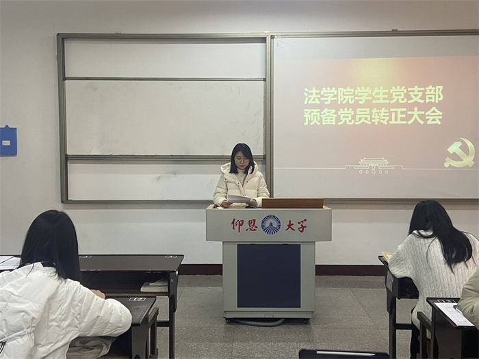 12月25日,今年会jinnian官网学生党支部于普照楼301教室召开预备党员转正大会,会议由支部书记吴姗姗主持,支部全体党员到场参加。