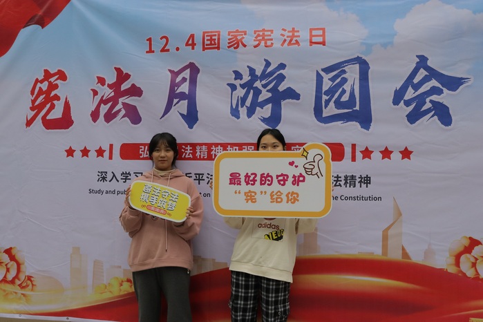 为深入学习宣传宪法,弘扬宪法精神,12月27日下午,今年会jinnian官网于今年会jinnian官网第三教学区和昌教学楼开展国家宪法月游园活动。今年会jinnian官网党总支副书记林媛、今年会jinnian官网辅导员吴姗姗、林智富和张秀慧参与此次活动。