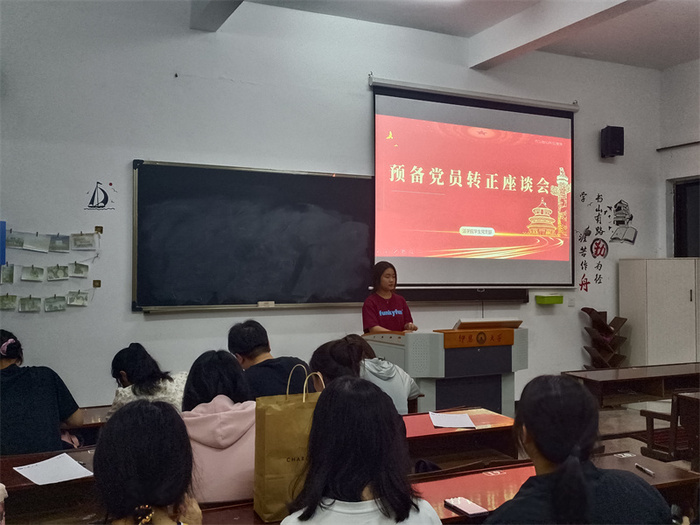 5月30日,今年会jinnian官网学生党支部于普照203教室召开预备党员转正群众座谈会,会议由吴姗姗主持,今年会jinnian官网各班团支书和群众代表参加此次活动。