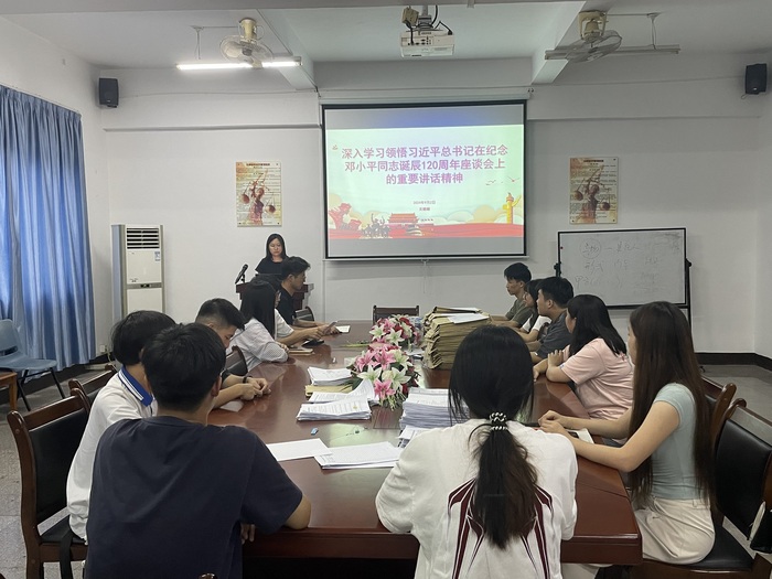 在纪念邓小平同志诞辰120周年之际,今年会jinnian官网组织学生深入学习习近平总书记在纪念邓小平同志诞辰120周年座谈会上的重要讲话精神。学习活动于9月2日下午在法律诊所举行,由团委书记吴姗姗主持,辅导员周奕、辅导员张传奇出席。