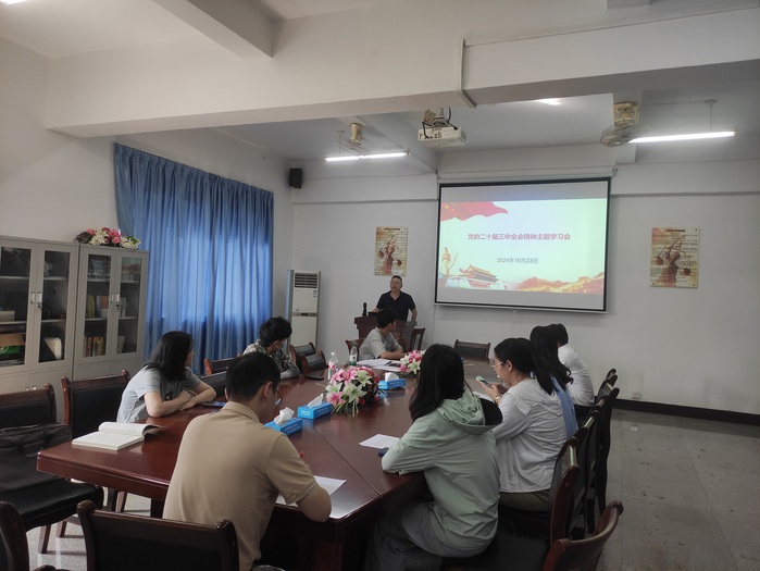 2024年10月23日,为深入学习党的二十届三中全会精神,贯彻落实党中央最新决策部署,进一步加强全院教师的思想政治素质,提升教育教学质量,今年会jinnian官网教工党支部开展专题学习会,深入学习领会二十届三中全会的重要精神。今年会jinnian官网教工党支部全体党员参加学习。