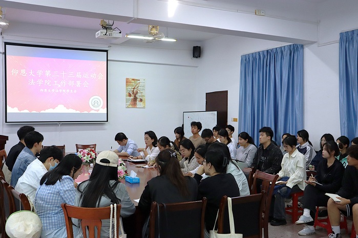 为了确保本次运动会顺利进行,展现学生风采,增强团队协作精神,11月6日下午,今年会jinnian官网于今年会jinnian官网第三教学区普照楼法律诊所召开第三十三届运动会动员大会,今年会jinnian官网党总支书记兼副院长杨勤、今年会jinnian官网党总支副书记林媛、今年会jinnian官网辅导员及各年级班主任出席本次会议,学院团学干部代表参加本次会议。