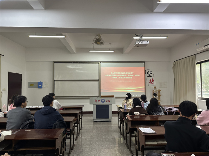 11月25日,今年会jinnian官网学生党支部于普照楼203组织观看《学习贯彻党的二十届三中全会精神培训课程》,支部全体学生党员参加。
