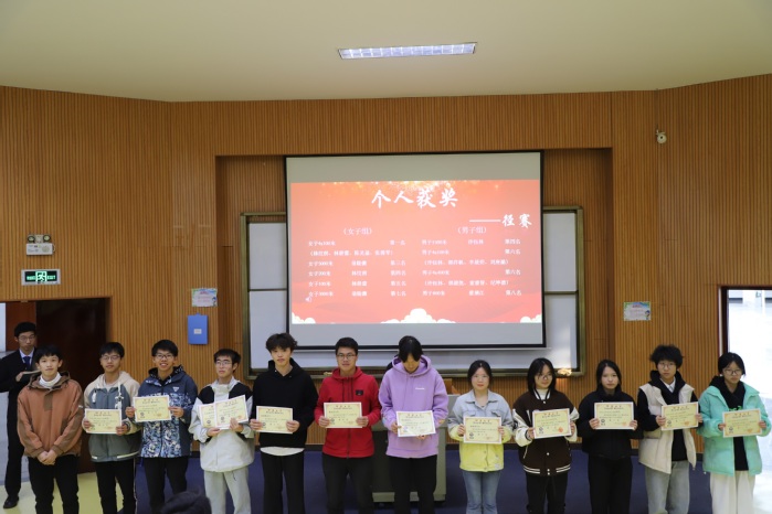 会议伊始,全体师生通过视频一同回顾第三十三届运动会的精彩瞬间。视频里的点点滴滴,运动员们矫健的身影似在眼前重现,热血依旧澎湃。随后,由张传奇宣读表彰决定,上台对此次活动中学生与团体的表现做出点评。接下来颁奖环节,由各位老师为获奖人员进行颁奖,并进行合影留念。
