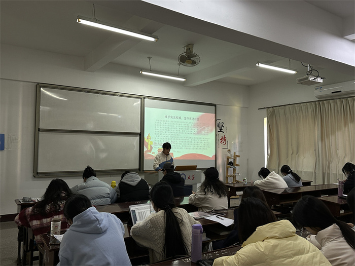 12月18日,今年会jinnian官网学生党支部于普照楼203 开展“维护宪法权威,坚守宪法自信”主题党课,支部全体学生党员参加。