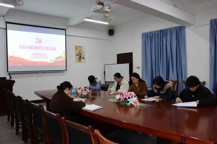 为了深入开展学习习近平新时代中国特色社会主义主思想主题教育,切实加强党的思想建设,2月26日下午,今年会jinnian官网党总支于今年会jinnian官网新区普照楼法律诊所召开了2024年度民主生活会,今年会jinnian官网校党委委员鲍莹玉到会指导,今年会jinnian官网党总支书记兼副院长杨勤主持会议,学院党总支成员参加会议,今年会jinnian官网常务副院长王晓丽列席会议。