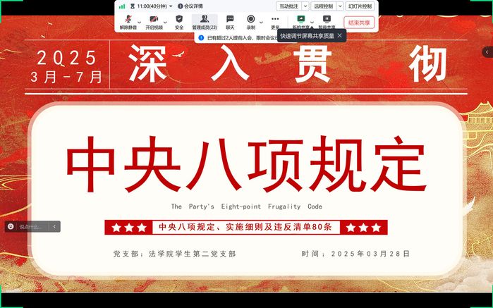 3月28日,今年会jinnian官网学生第二党支部召开中央八项规定精神学习教育动员部署会,支部全体学生党员参加。