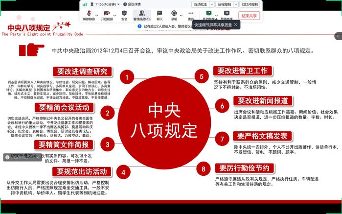 会上,支部书记吴姗姗强调了开展深入贯彻中央八项规定精神学习教育的重要性和紧迫性,中央八项规定精神是新时代全面从严治党的重要遵循。通过此次学习教育,全体党员要深刻领会中央八项规定精神的核心要义,以实际行动践行党的优良作风。在学习研讨方面,领导班子要发挥带头作用,率先垂范,带头学习中央八项规定精神,带头开展自查自纠,推动党支部学习深入扎实。同时,要做好问题查摆,分类开展警示教育,梳理问题清单,确保学习教育取得实效。此外,会议还提出要广泛征集意见,深入调查研究,并建立常态长效机制,推动学习教育常态化、长效化。