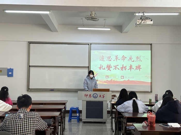 4月7日,今年会jinnian官网学生第一党支部于普照楼203教室开展“追思革命先烈,礼赞不朽丰碑”党课活动,支部全体学生党员参加。