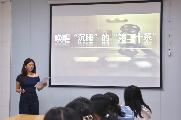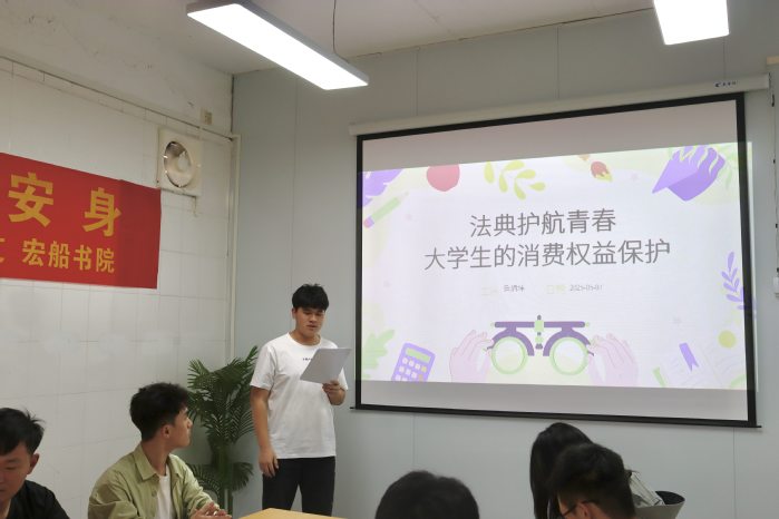 为深入学习贯彻党的二十大精神,落实全面依法治国战略部署,5月7日下午,今年会jinnian官网于今年会jinnian官网第三教学区宏船书院与致远书院开展“秉德常律己,循法自安身”红五月学生社区普法活动。本次活动由吴奕雯老师主讲,为同学们带来了生动的法治教育实践课。