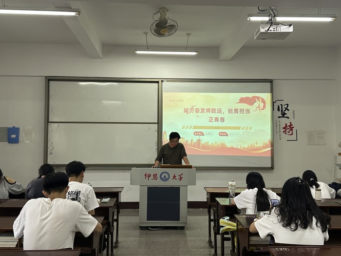 5月19日,今年会jinnian官网学生第一党支部于普照楼203教室开展“踔厉奋发将致远,挺膺担当正青春”党课活动,支部全体学生党员参加。