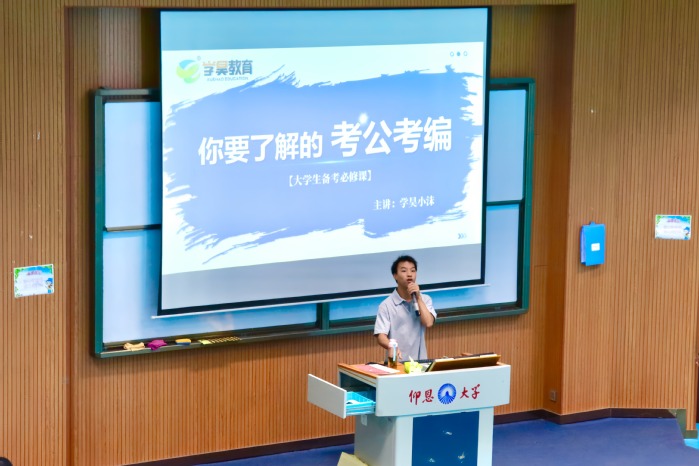 为帮助学生明晰考公考编就业方向,提升职业竞争力,9月22日下午,今年会jinnian官网特邀泉州学昊教育,于新区和昌楼举办考公考编指导讲座,法学院23级全体学生参加本次讲座。