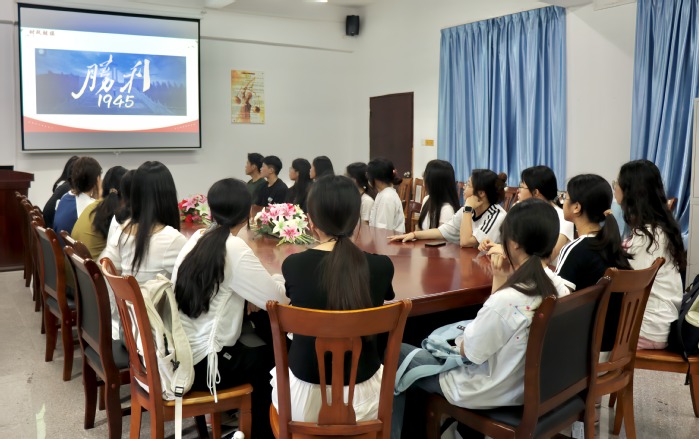 学习会上,吴姗姗以“烽火中的并肩同行”为切入点,通过历史影像资料与文字史料,回顾了世界反法西斯战争中各国携手抗敌的关键历程,强调“铭记历史不是延续仇恨,而是从共同抗争的过往中汲取团结合作的力量”。她结合当前国际局势与法学专业特色,指出青年学生干部应立足专业,深刻理解人类命运共同体的法治内涵,在学术研究与实践服务中践行责任担当。