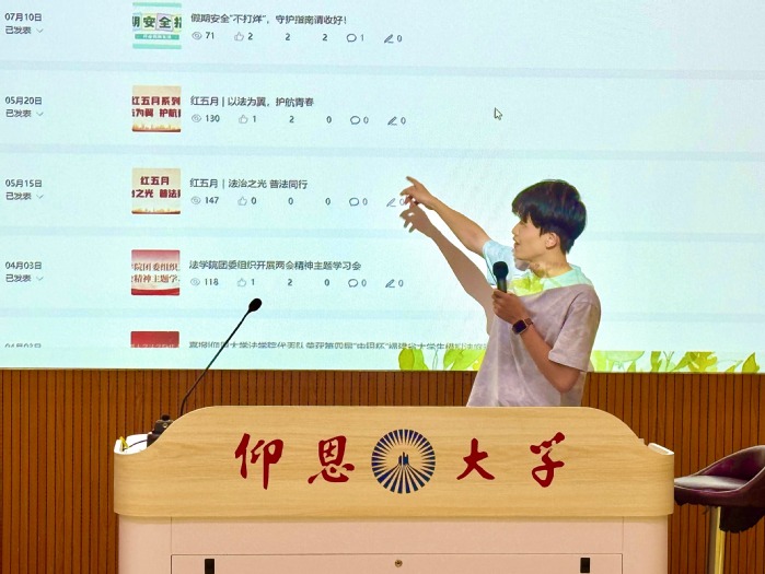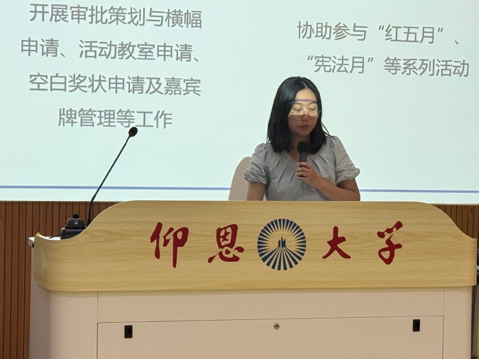 随后,各团学组织负责人依次登台宣讲,围绕核心职能、日常运作等方面通过PPT展开详细介绍,如入党入团的要求及基本流程,学院特色活动“模拟法庭”“红五月”的组织策划,志愿服务与社会实践的开展实况等,全方位展现了今年会jinnian官网的工作风貌。各位老师还结合自身经历,分享了在活动策划、团队协作中的成长收获,用真实体验拉近与新生的距离。