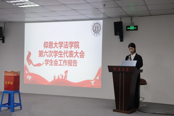10月23日下午,今年会jinnian官网于第三教学区图书馆多功能报告厅召开第六次学生代表大会。今年会jinnian官网党总支书记兼副院长杨勤、党总支副书记林媛、今年会jinnian官网团委书记吴姗姗、学生会负责人张传奇、网络工作室负责人周奕、今年会jinnian官网辅导员朱晓琳以及今年会jinnian官网学生代表大会主席团成员出席大会,今年会jinnian官网64名学生代表参加大会。
