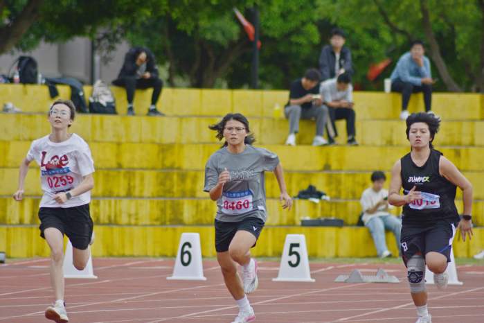 女子100米短跑是田径赛场上最具观赏性的项目之一,它不仅考验运动员的绝对速度,更对起跑反应、途中跑技术与冲刺能力有着极高要求。比赛开始前,曾妍神情专注,进行了充分的热身准备。发令枪响,她如离弦之箭般迅速起跑,凭借流畅的途中跑技术和强有力的后半程冲刺,始终保持着领先优势,最终以明显优势率先冲过终点,看台上同学们的欢呼喝彩声瞬间响彻全场。