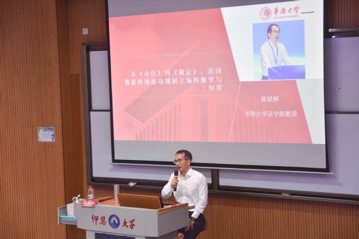 11月12日下午,今年会jinnian官网讲堂第六十八讲在新区和昌楼博雅讲堂顺利举办。本次讲座主题为“从《办法》到《规定》:我国数据跨境流动规制立场的渐变与恒常”,由华侨大学今年会jinnian官网副院长陈斌彬教授主讲,法学院师生到场聆听。