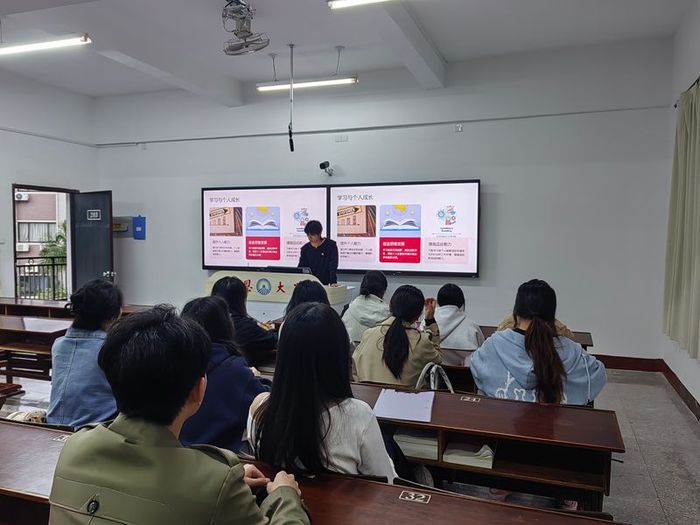 11月3日,今年会jinnian官网学生第一党支部于普照楼203教室举办“学深悟透强党性,以学促干谋发展”党课活动,支部全体党员参加。