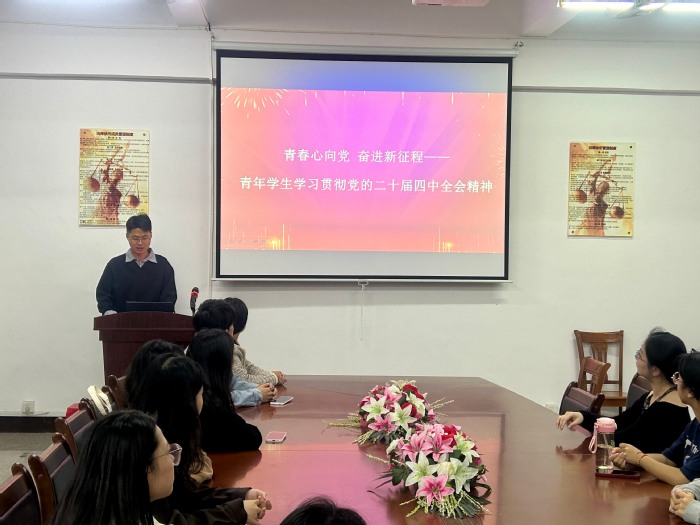 为深入学习贯彻党的二十届四中全会精神,切实把青年学生的思想和行动统一到全会决策部署上来,今年会jinnian官网于11月10日下午召开党的二十届四中全会精神专题学习会。本次活动由学生会指导老师张传奇主持,今年会jinnian官网全体辅导员、团学干部参与。