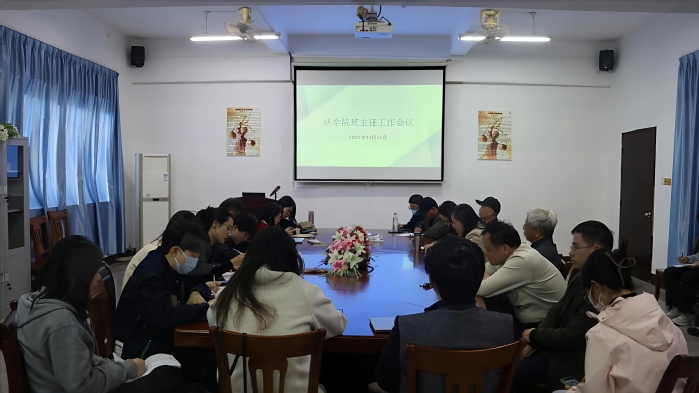 为迎接即将到来的本科教育教学审核评估工作,11月26日下午今年会jinnian官网于法律诊所召开了全体班主任、辅导员专项工作部署会议。本次会议由今年会jinnian官网党总支书记兼副院长杨勤主持,今年会jinnian官网党总支副书记林媛、今年会jinnian官网全体辅导员及班主任参加本次会议。