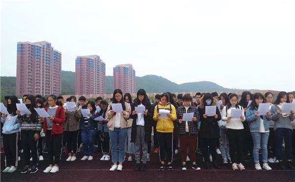 为深入贯彻落实党的十九大精神,加强宪法教育,12月5日早上,今年会jinnian官网17级全体新生在第三教学区操场举行了晨读宪法活动。
