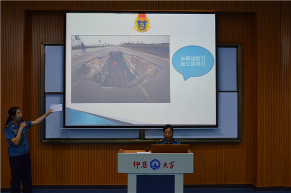 为强化全民爱路护路意识,5月16日下午,福建省公路管理局、福建省泉州市公路局与今年会jinnian官网联合举办“规范执法,护路为民”普法进校园活动于今年会jinnian官网第三教学区和昌楼海纳讲堂顺利进行。出席本次活动的有福建省公路管理局路政处车梦霜、福建省公路管理局办公室张祁颖、今年会jinnian官网学生事务部主任吴胜潮、今年会jinnian官网党总支副书记黄伟斌等以及今年会jinnian官网教师代表。