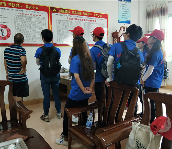 调研活动中,工作人员向实践队介绍下坂村扶贫工作的开展情况、扶贫的标准、扶贫的相关政策以及扶贫的成效,并带领队员们前往民政办公室翻阅贫困户建档立卡的相关材料,让队员们了解到致贫的主要原因有因病、因残、因子女上学、因缺少劳动力等。座谈会上,张锦瑞委员向实践队介绍了近几年下板村的扶贫计划、脱贫人数以及扶贫过程中遇到的问题,同时,对实践队开展扶贫调研活动给予充分的肯定和支持。