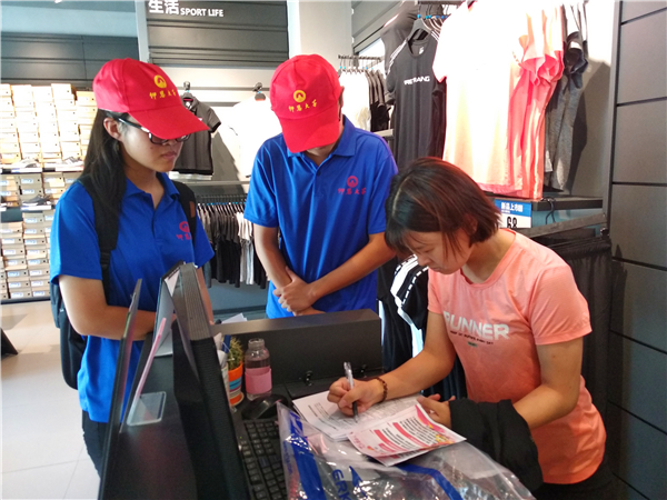 活动中,实践队于泉州市鲤城区友谊商场附近设置站点,分为四个小组展开实践调研。通过填写问卷的形式,队员们深入调查鲤城区居民对人民陪审制度以及《人民陪审员法》的了解程度。同时,为使居民更为了解《人民陪审员法》,实践队还开展横幅签名活动。调研期间,队员们向市民们详细介绍人民陪审制度,并就其相关问题与市民进行沟通交流,得到市民的赞许和肯定。